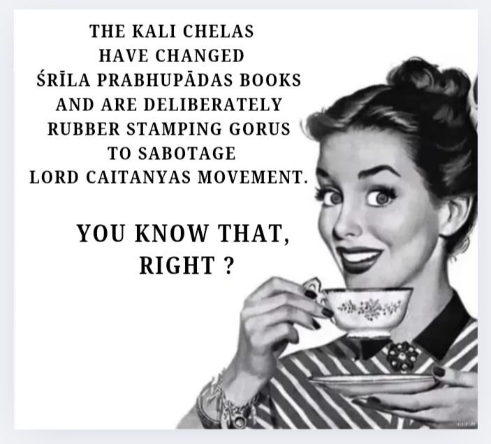 Nowadays maya-ISKCON mainstream preaching is that no need to worry how qualified or authorized is your ‘ISKCON guru’, just choose whoever you like and who is “in good standing” (or even not anymore) and follow him/her. Then you will surely go to the spiritual world along with this guru.